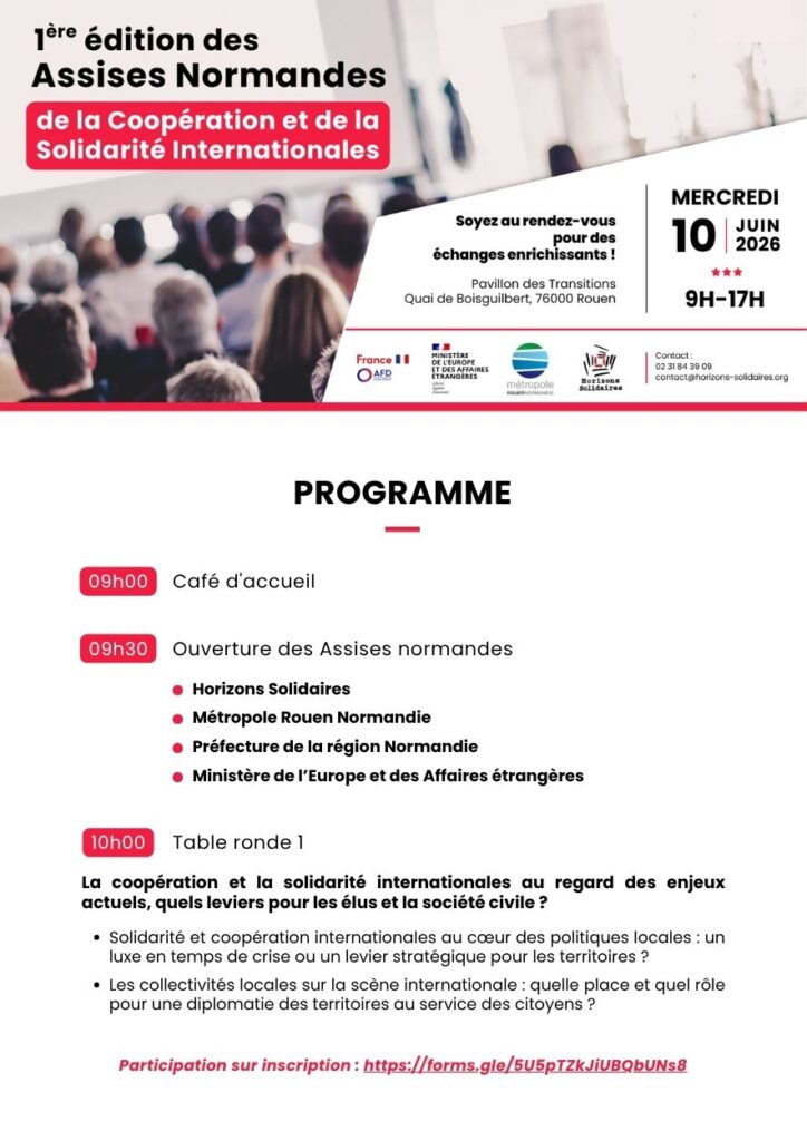 Horizons Solidaires, Réseau Régional Multi Acteurs de la Coopération et de la Solidarité de Normandie co-organise les 1ères Assises normandes de la Coopération et de la solidarité Internationales avec la Métropole Rouen Normandie :